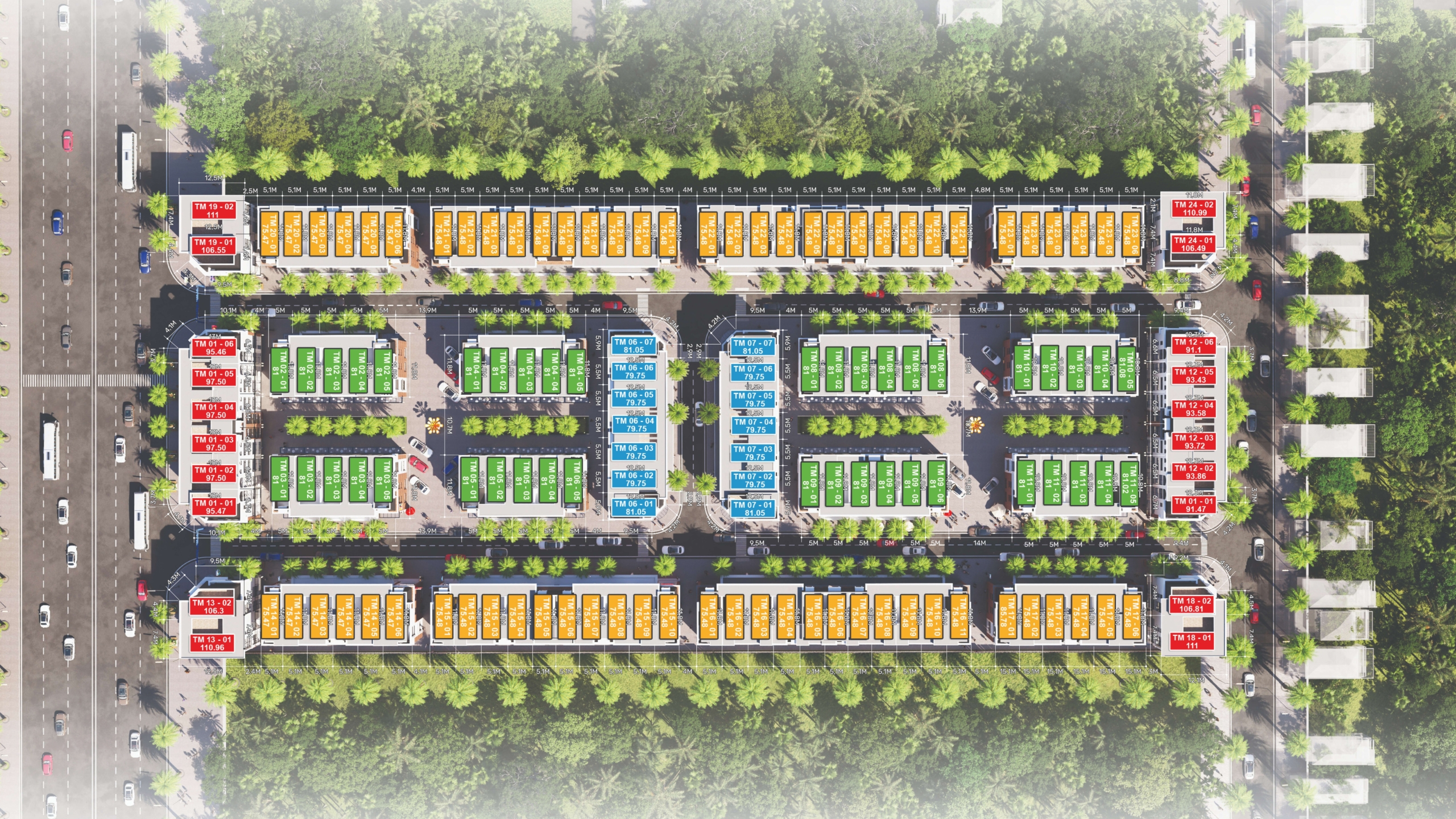 Thiết kế đồng bộ: Các dãy nhà được xây dựng đồng bộ về kiến trúc mặt ngoài, tạo nên cảnh quan hài hòa và nâng cao giá trị thẩm mỹ toàn dự án.